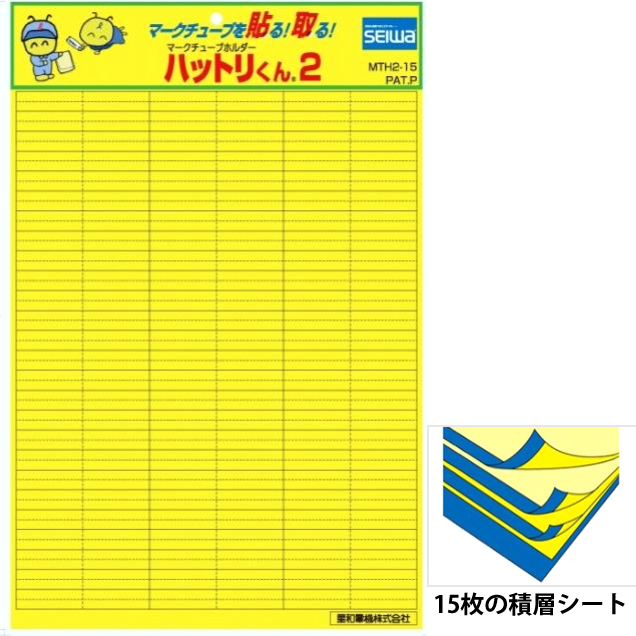 粘着シートに貼り付けるだけで、マークチューブの整理、分類、保管が簡単に行えます。粘着剤付きフィルムシートは15枚重ねで、軽く持ち運びにも便利です。