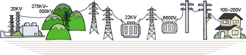 普段わたしたちは、その電気を手軽にコンセントから使用していますが、どうやってわたしたちの家まで来るのでしょうか?